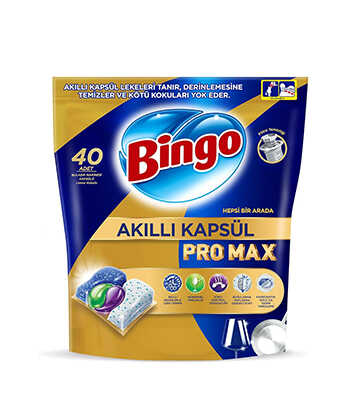 Bingo bulaşık tableti, Pro Max bulaşık makinesi deterjanı, Bingo Akıllı Kapsül 40’lı, bulaşık deterjanı tablet, Bingo Pro Max