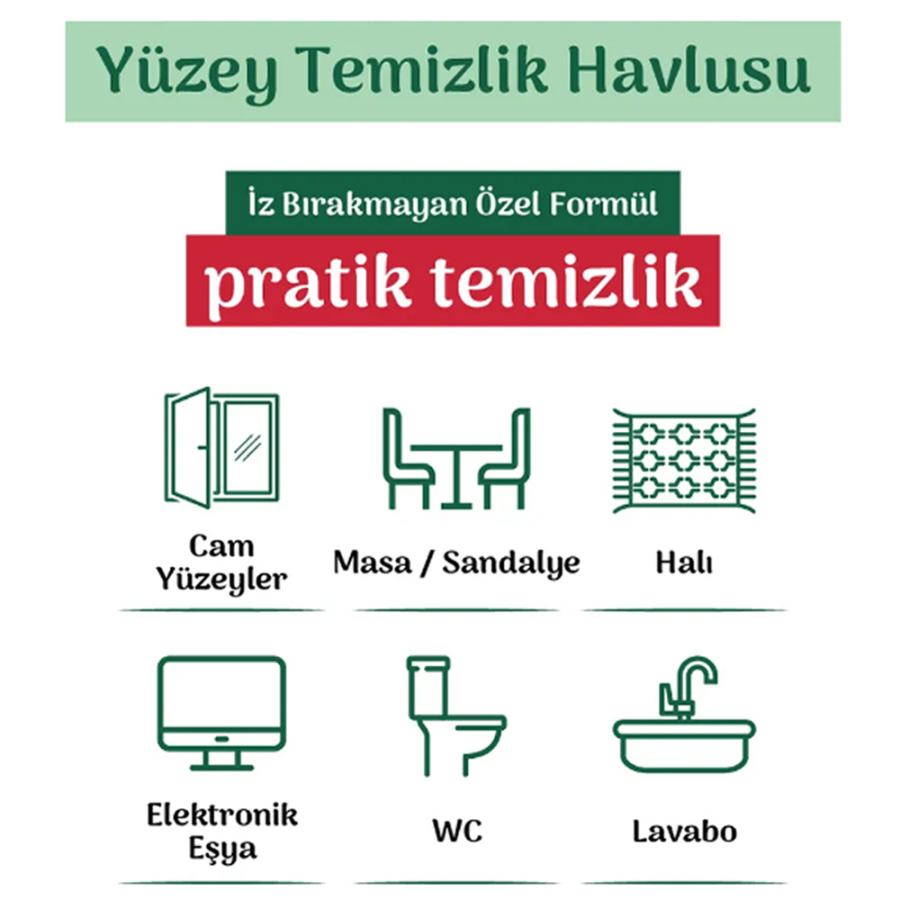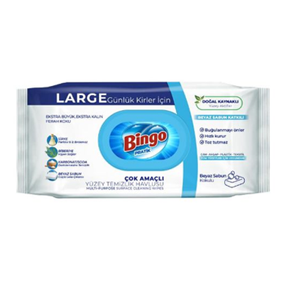 Bingo Yüzey Temizleyici Havlu Beyaz Sabun, evinizin her köşesini kolayca ve pratik bir şekilde temizlemenize yardımcı olur. Beyaz sabun özlü formülü sayesinde yüzeylerde derinlemesine temizlik sağlar ve ferah bir koku bırakır.