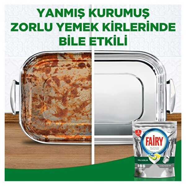 Fairy Platinum 60 Yıkama Bulaşık Makinesi Deterjanı Kapsülü Limon Kokulu ile zorlu yağ ve kirleri tek yıkamada temizleyin, parlak ve ferah sonuçlar elde edin.