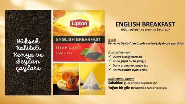Gelince Haber VerLipton English Breakfast, güne zinde başlamanızı sağlayan yoğun aromaya sahip, bergamot eklenmemiş klasik siyah çay harmanıdır. Pratik bardak poşet formu sayesinde evde, ofiste, toplantılarda ve toplu tüketim alanlarında hızlı servis imkânı sunar.