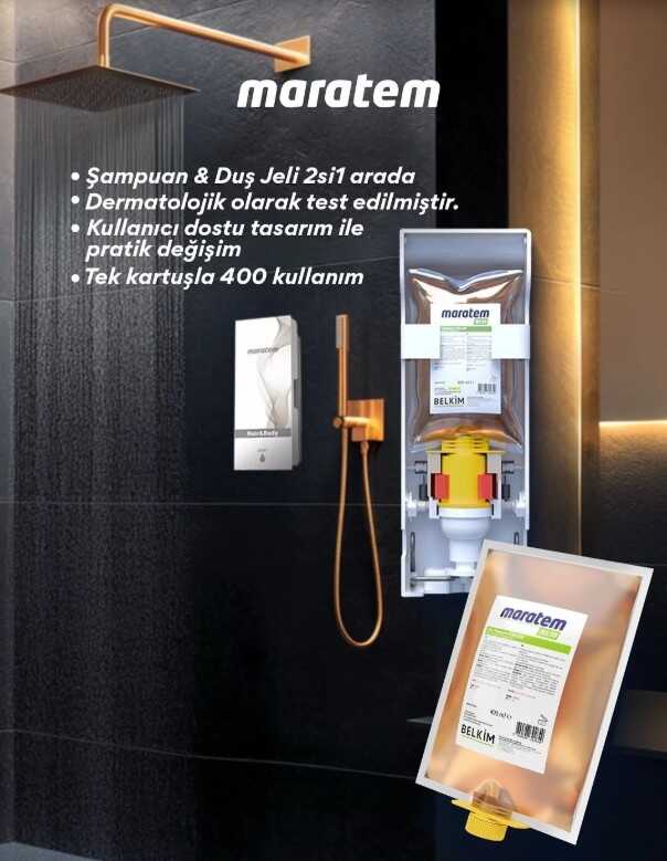 Maratem M130 2in1 Şampuan ve Duş Jeli, hem saç hem de vücut temizliği için tasarlanmış pratik ve hijyenik bir üründür. Yumuşak formülü ile cildi nazikçe temizlerken nemlendirir, saçları derinlemesine arındırır ve ferah bir temizlik hissi bırakır.
