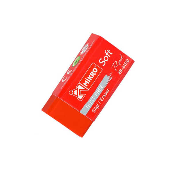 Mikro silgi 2B-24RD, soft silgi kırmızı, kurşun kalem silgisi, okul silgisi, ofis silgisi, kaliteli silgi, ofisegetirelim