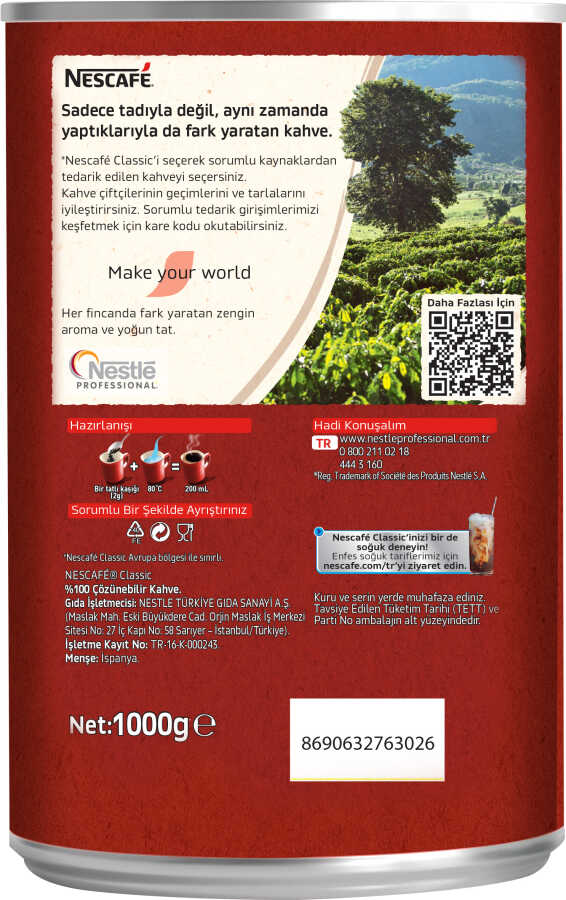 Nescafe Classic Çözünebilir Kahve Teneke 1kg ve tüm Nescafe kahve çeşitleri, en uygun fiyat avantajı ve İstanbul içi 1 iş günü ücretsiz teslimat fırsatıyla ofisegetirelim.com üzerinden güvenle sipariş edilebilir.