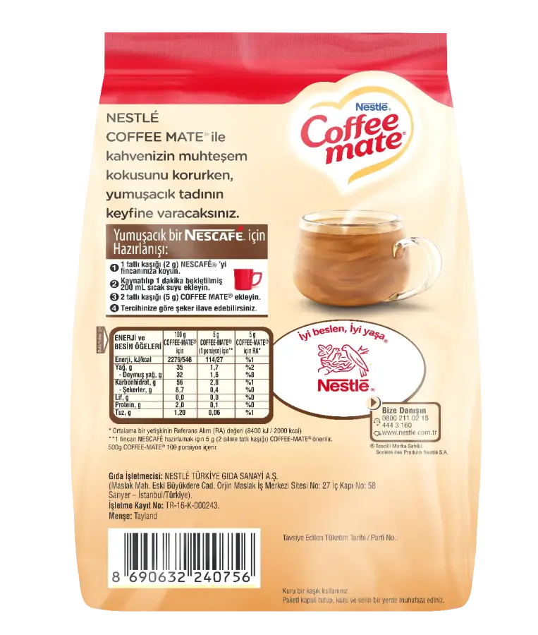Sözcük anlamı ''kahvenin arkadaşı'' olan Coffee Mate, Nestle uzmanlığında geliştirilmiş kahve kremasıdır.