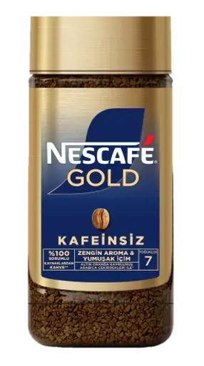 Nescafe Gold Kafeinsiz Kavanoz Kahve 100 gr ile kafeinsiz keyif doruklarda! Özel olarak seçilmiş Arabica çekirdeklerinden üretilen Nescafe Gold Kafeinsiz Kahve, zengin aroması ve yumuşak tadıyla gece geç saatlerde bile keyifle tüketebileceğiniz eşsiz bir lezzet sunar. Kafeinin olumsuz etkilerinden kaçınmak isteyenler için ideal olan bu ürün, doğal yöntemlerle kafeinden arındırılmıştır. Şık cam kavanozu sayesinde kahvenizi tazeliğini koruyarak uzun süre muhafaza edebilirsiniz. 100 gramlık pratik boyutu ile evinizde veya ofisinizde yanınızda taşıyabilirsiniz. Nescafe Gold Kafeinsiz kahve ile hem sağlığınıza özen gösterirken hem de damak zevkinizi şımartın. Hemen şimdi sipariş verin ve Nescafe Gold Kafeinsiz'in eşsiz lezzetini keşfedin!