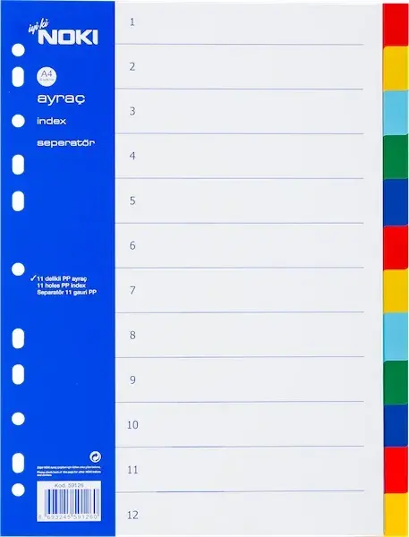 Noki separatör 59126, 2x6 renkli separatör, 12 bölmeli dosya ayracı, klasör ayraç, ofis dosyalama ürünü, ofisegetirelim