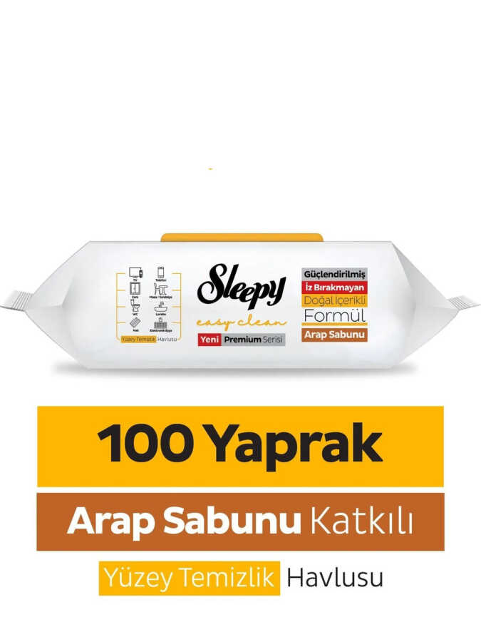Sleepy Yüzey Temizleyici Mendil, evde ve dış mekanlarda temas edilen tüm yüzeylerde maksimum hijyen sağlamaya yardımcı olur. İz bırakmayan doğal içerikli formülü sayesinde bir çok alanda kullanılabilir. Arap sabunlu içeriği sayesinde, sık temas edilen yüzeyleri durulama gerektirmeden temizler. Arap sabunu kokusu ferahlatıcı etki sağlar. Kullan-at özelliği sayesinde pratik ve hiyeniktir. Ekstra büyük, ekstra kalın özelliği sayesinde, tek yaprak ile mükemmel temizlik sağlar. Yer kaplamaz, alandan tasarruf sağlar. Vegandır ve hipoalerjeniktir. Paraben, Glüten ve SLS gibi zararlı kimyasallar içermez. Durulama gerektirmeyen, pratik, hijyenik, kullan-at özellikli bir temizlik havlusudur.